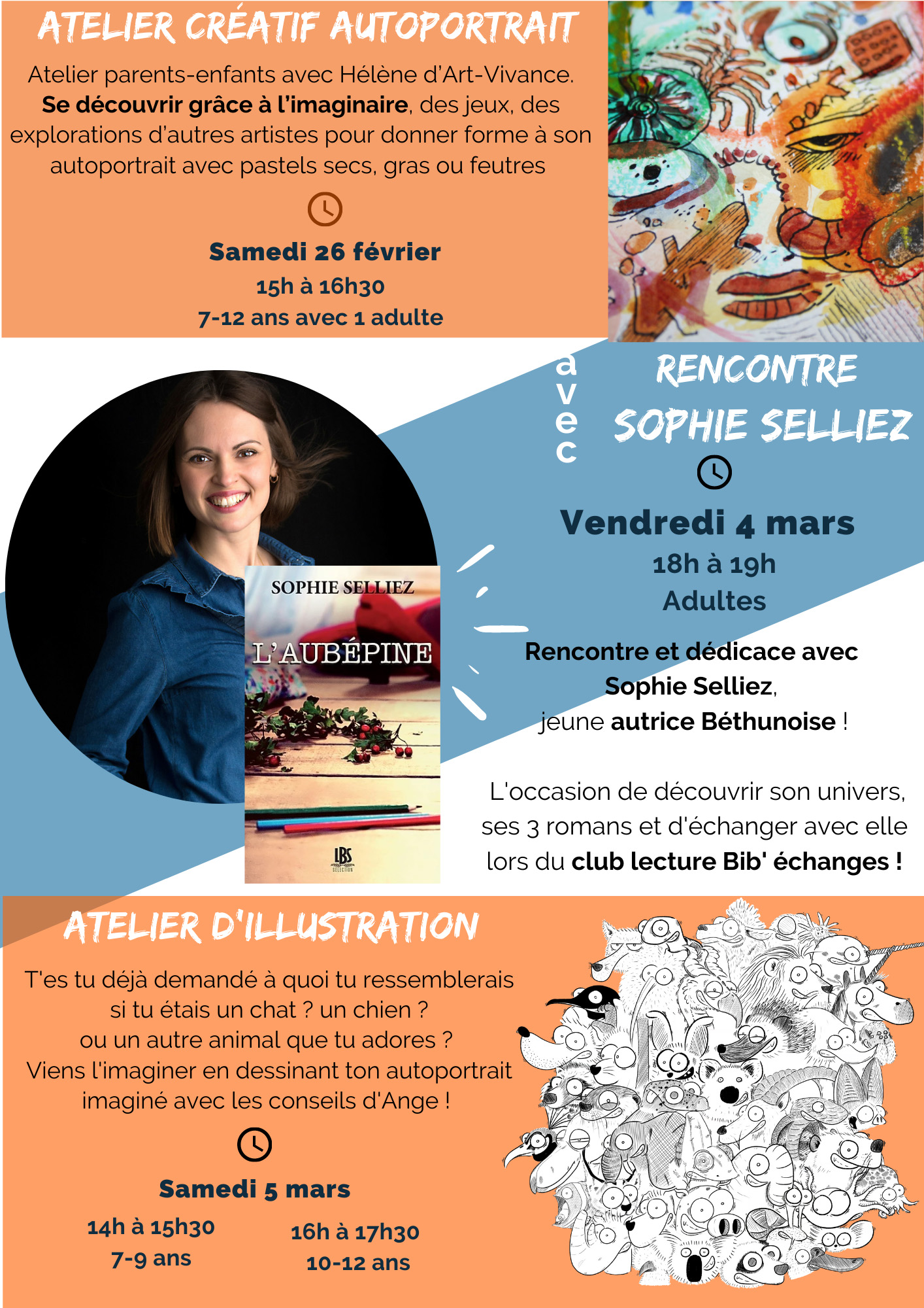 Ateliers BD, prêt de liseuses, lectures, ateliers musique, céramique, illustration, BD numérique, atelier photo, rencontre avec Brice Follet, Leno Solveig et Sophie Selliez… et plein d’autres animations !