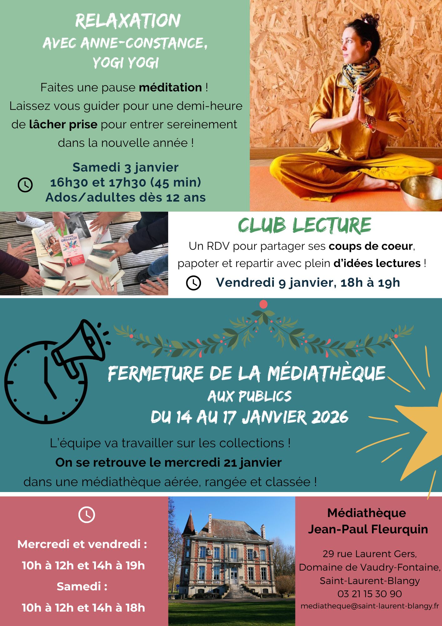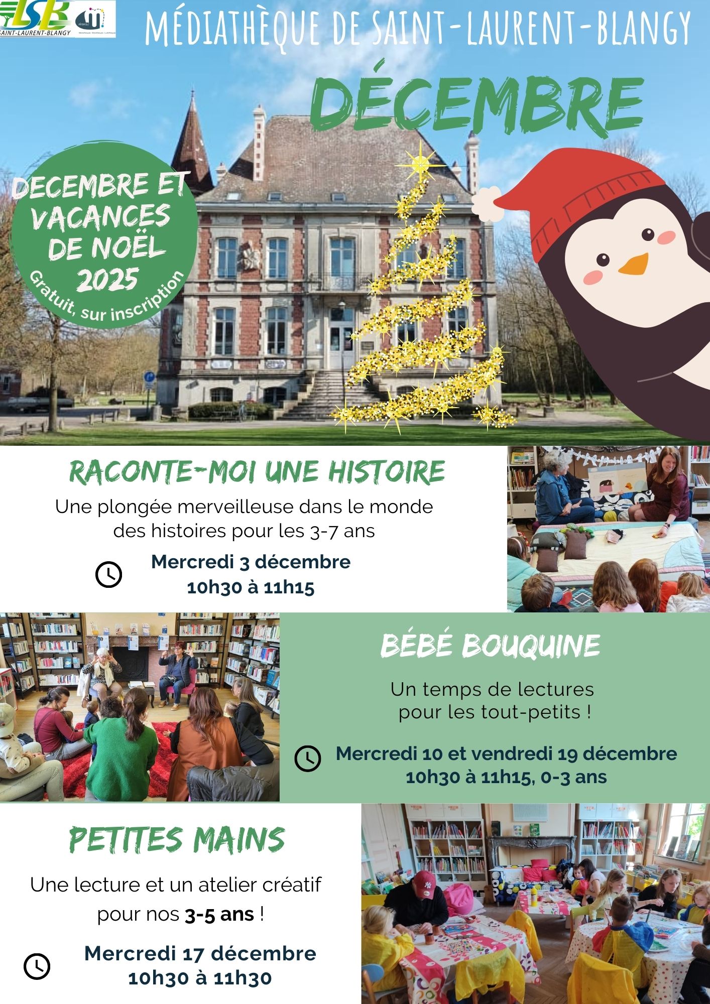 Tous les ateliers sont sur inscription 03 21 15 30 90 ou mediatheque@saint-laurent-blangy.fr ou sur place
