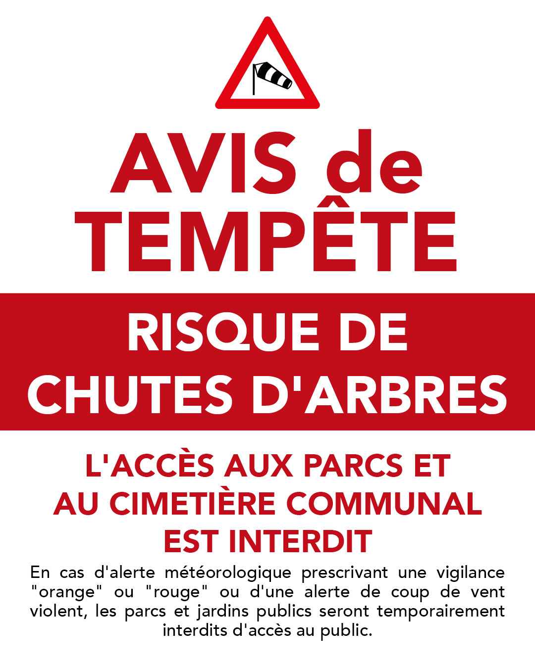 En cas d’alerte météorologique prescrivant une vigilance « orange » ou « rouge » ou d’une alerte de coup de vent violent, les parcs et jardins publics seront temporairement interdits d’accès au public.